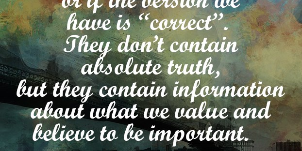 But, in the end, the way they tell the story, the parts they keep and the parts they change, are a window into what that story meant to them. The new story is now a legend. It is living the same life all legends live, the same life our sacred texts and most treasured myths lived in the beginning.